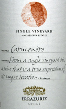 Errazuriz Carmenere Single Vineyard 2007, 2009