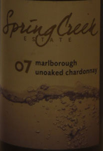 Springs Creek Chardonnay Unwooded 2007