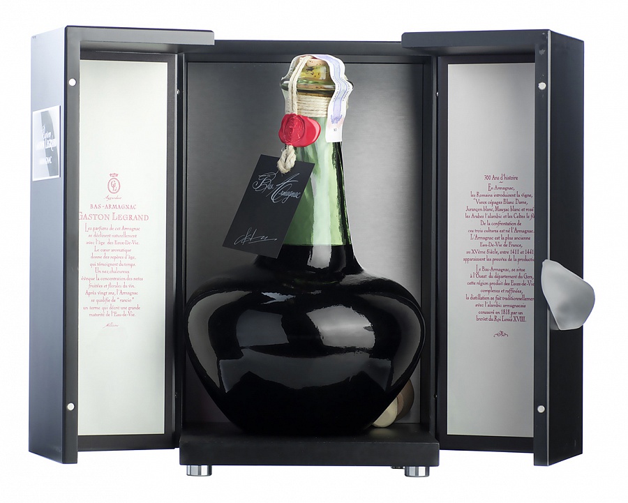 Способ выдержки: В конце процесса выдержки арманьяк иногда переливают в огромные бочки емкостью 10 тысяч литров, где его старение замедляется. Бочки с арманьяком хранятся на земляном полу в погребах, построенных из местного камня. Поэтому после такого срока выдержки его переливают в стеклянные чаны или бутыли, где процесс старения прекращается, и арманьяк сохраняет свой чудесный аромат.